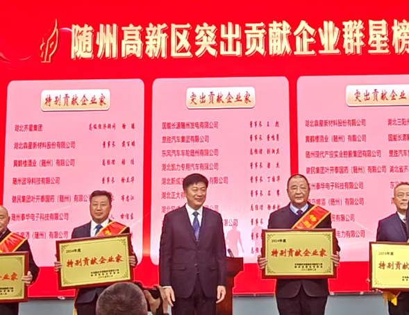 On February 11, 2025, Suizhou High tech Zone held a conference on the "main engine" of high-quality economic development. Chairman Dai Baixiong was awarded the honorary title of "Special Contribution Entrepreneur" for Suizhou High tech Zone in 2024 and delivered a speech as a representative of the special contribution entrepreneur at the conference. The chairman mainly made three points: