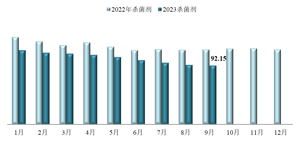 殺菌劑價(jià)格指數(shù)為92.15,環(huán)比下跌0.98%,同比下跌21.32%。監(jiān)測(cè)在內(nèi)的34種殺菌劑和植物生長調(diào)節(jié)劑產(chǎn)品中,加權(quán)平均成交價(jià)格環(huán)比上漲的10種,環(huán)比持平的3種,環(huán)比下跌的20種;加權(quán)平均成交價(jià)格同比上漲的4種,同比持平的2種,同比下跌的25種。