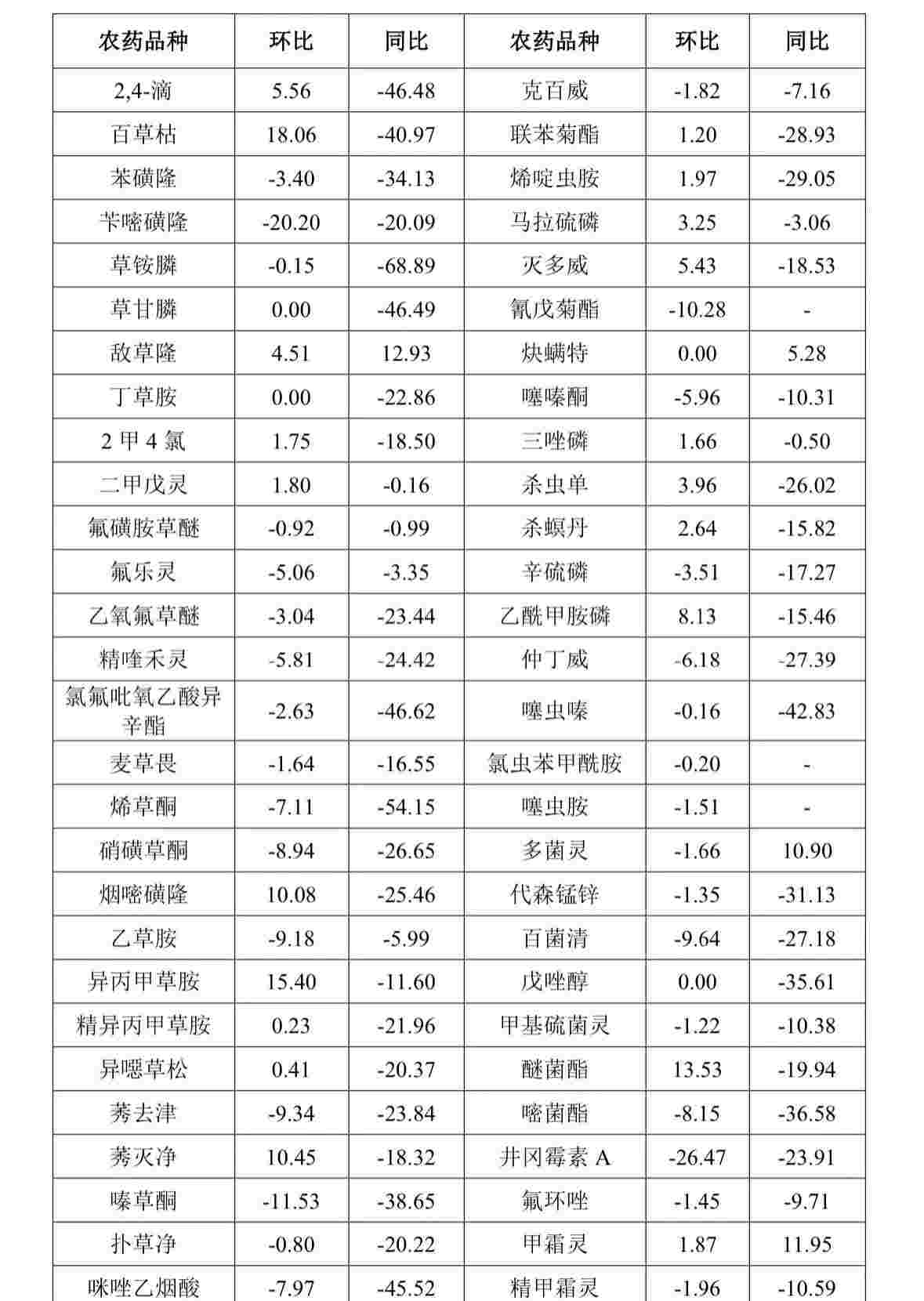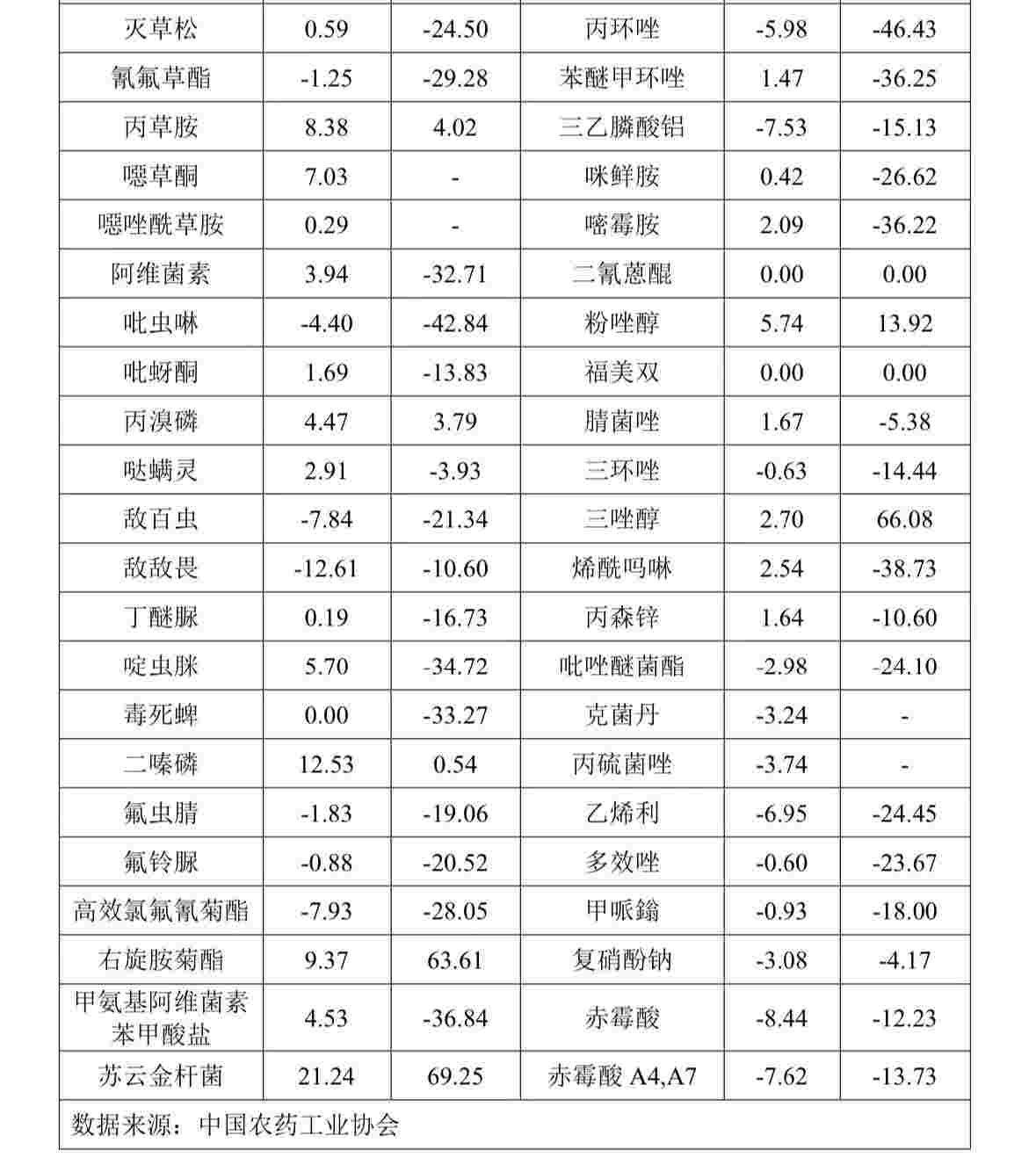 表1 2023年9月部分農(nóng)藥原藥加權(quán)平均成交價(jià)格運(yùn)行情況(%)