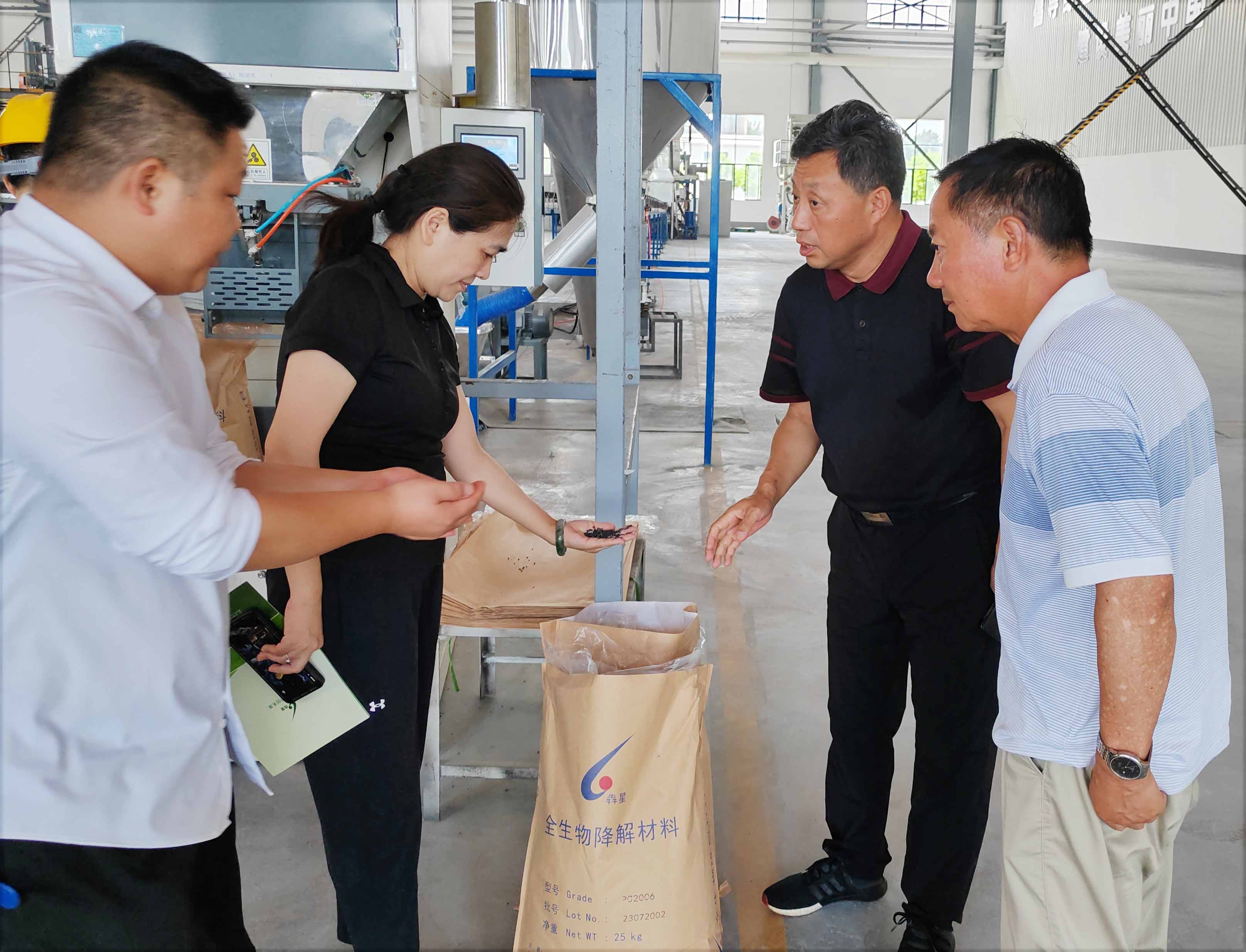 2023年7月21日,省農(nóng)業(yè)農(nóng)村廳環(huán)保站樊丹站長等一行領(lǐng)導(dǎo)專家到我司考察調(diào)研生物新材料地膜項(xiàng)目,戴百雄董事長接待了樊丹站長一行并陪同調(diào)研。