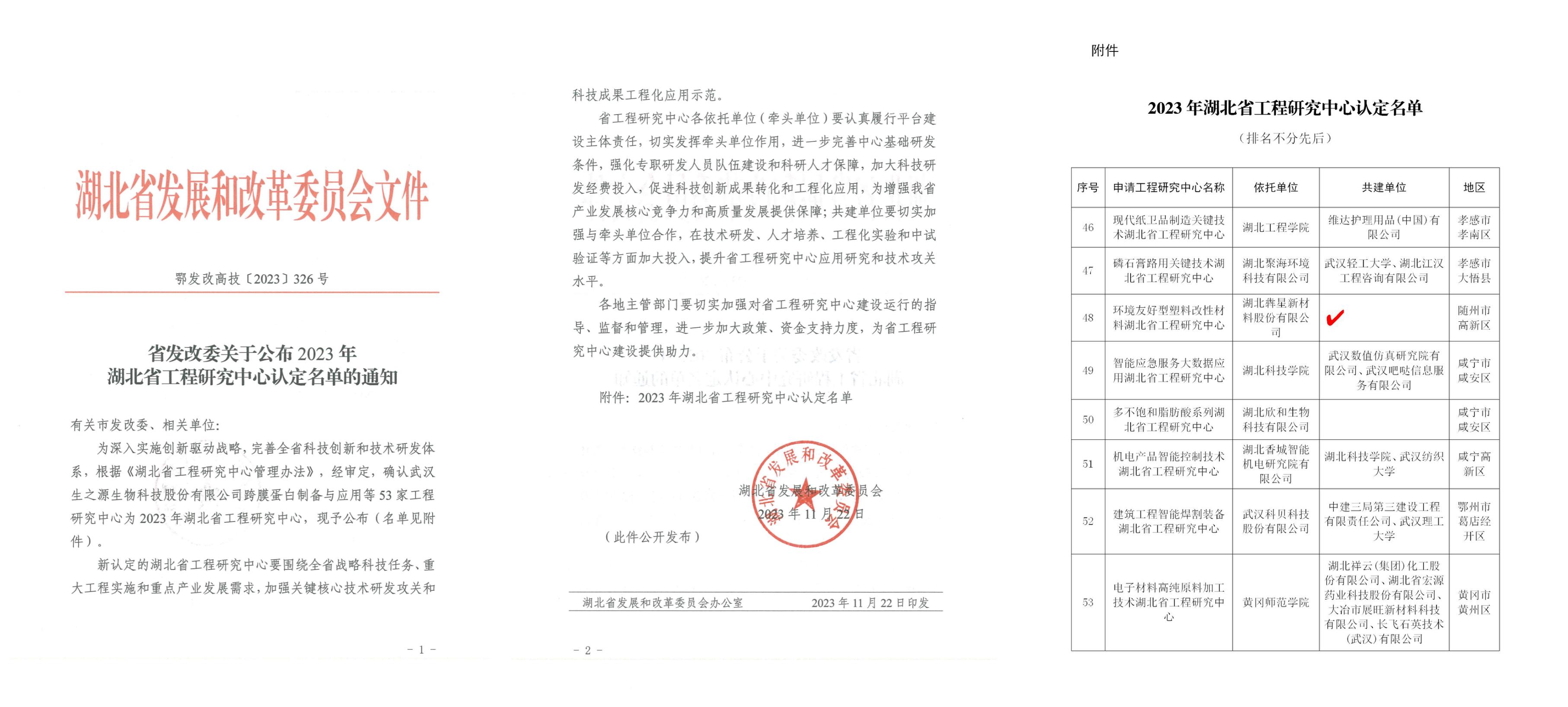 近日,湖北省發(fā)改委公布了2023年湖北省工程研究中心認定名單(鄂發(fā)改高技【2023】326號),我司申報的“環(huán)境友好型塑料改性材料湖北省工程研究中心”正式獲批認定,該工程中心是我司獲批的首個省級工程研究中心。