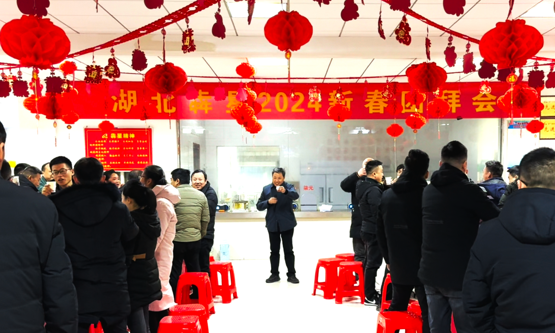 2024年2月3日,公司2024年新春團拜會在老區(qū)職工食堂隆重舉行,團拜會現(xiàn)場張燈結彩,洋溢著濃厚的節(jié)日氛圍。公司領導、各部門負責人以及機關后勤員工歡聚一堂,共襄盛宴。