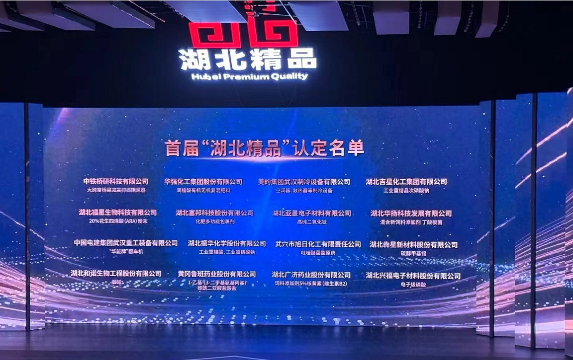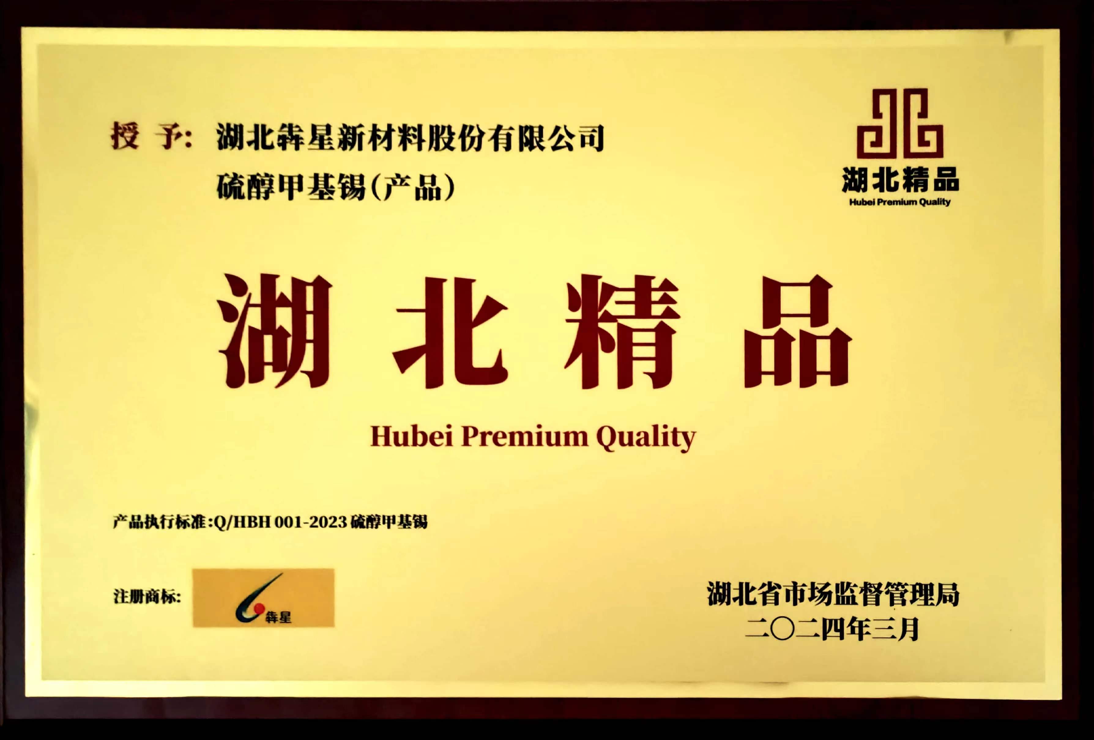 2024年3月26日,湖北省市場監(jiān)管局舉辦了首屆“湖北精品”發(fā)布活動,我司申報(bào)的硫醇甲基錫(產(chǎn)品)被授予首屆“湖北精品”。